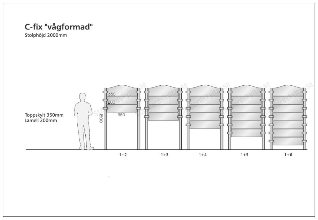1+5 Infoskylt, 1st 980*350mm + 5st 980*200mm, Stolphöjd=2000mm18728:-